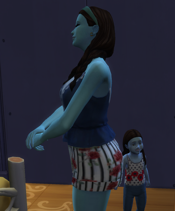 Here's our Thirza. She aged up with the Lazy trait and the Academic aspiration. She's gonna sit around reading books her whole life, isn't she? But anyway, she can't do uni yet so she will be making money for this broke ass family.