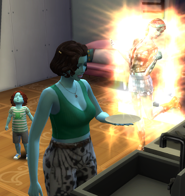After a bunch of different outfits I settled on this for her YA look. She got the Bookworm trait so I think a slightly nerdy beach-girl look works for her. She's also working as a Style Influencer starting tomorrow.