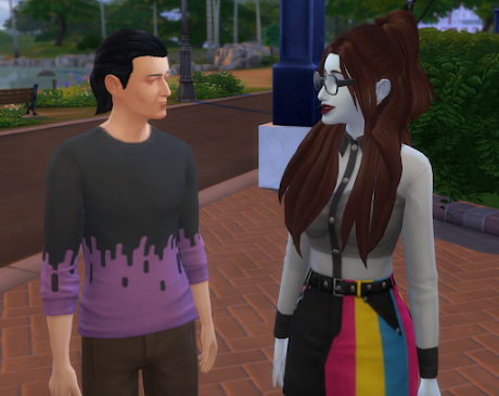 He grew up as a snob which is why he's got a slightly more refined look. I'm gonna let him stick around until we need the space for Teth's kids, so he's getting a job as a food critic. I still haven't done that one yet.