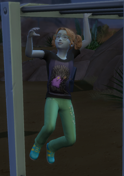 Daisy: Maybe there IS more to life than video games and spelling bees. These monkey bars are pretty - ooh, 'monkey' there's another word I did. God that felt good!